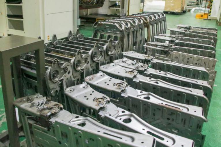 7.夾具設計精準、先進:在夾具不同部位設置有吹氣結構,以保障焊點位置全覆蓋;夾具通過快速定位位銷進行定位,拆裝方便;夾具設計均考慮防錯、防呆和防漏功能,均安裝吊環螺釘,夾具可以通過行吊進行更換;關鍵區域會增加防飛濺裝置;夾具設計所有焊接零件得到有效的壓緊,保證焊接接頭間隙小于0.2mm,壓緊時不破壞零件定位位置和幾何形狀以及表面質量。(每個壓塊的壓緊力不超過80N);夾具會給客戶提供完整的三坐標尺寸精度報告,夾具裝配后定位元素精度小于0.08mm;設有粗定位和粗導向,方便快速精準的裝件。