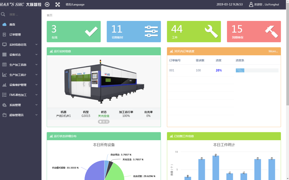 400-666-4000 大族激光智能裝備集團(tuán)Han’s MeSys激光設(shè)備信息管理系統(tǒng),一套面向制造企業(yè)車間管理層的生產(chǎn)信息化管理系統(tǒng)。可以為企業(yè)提供包括訂單進(jìn)度實(shí)時(shí)監(jiān)控、設(shè)備狀態(tài)管理、生產(chǎn)數(shù)據(jù)管理、零件損壞維保管理和FMS自動(dòng)生產(chǎn)線監(jiān)控等管理模塊,為企業(yè)打造一個(gè)全面化信息管理系統(tǒng)。