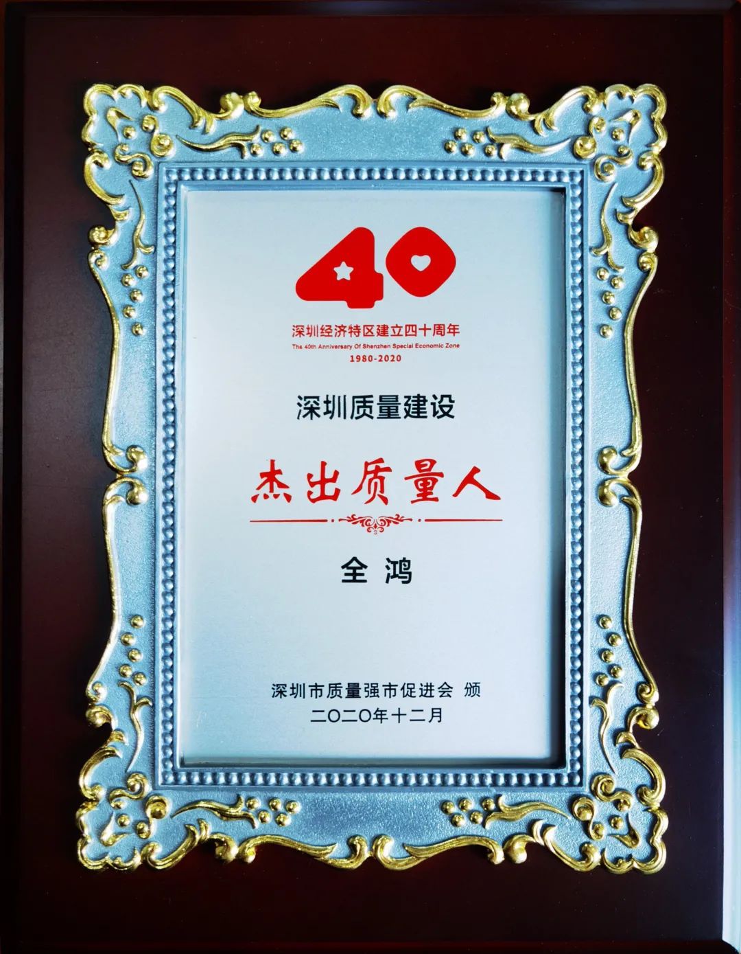 會上,大族激光智能裝備集團首席質量官全鴻被評為“深圳質量建設杰出質量人”,發揮質量標桿引領作用,持續帶動大族激光全員做好質量引領、精益求精,實現高質量發展。
