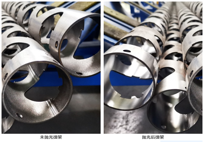通過對激光器功率、氣流、系統及NC程序優化,生產線實現對彈架高效率、高質量斷面切割及嚴格的毛刺和掛渣控制。