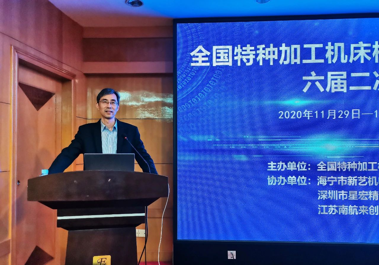 吳強主任委員還向標委會新增觀察員李廷波、鄒堯、崔海軍、徐海賓、趙晉勝5人頒發了聘書。會議協辦單位海寧市新藝機電有限公司總經理戴立強、江蘇南航來創科技有限公司董事長鄒堯、深圳市星宏精密電解科技有限公司總經理李廷波,分別介紹了各自在特種加工工藝和裝備方面的研究成果。