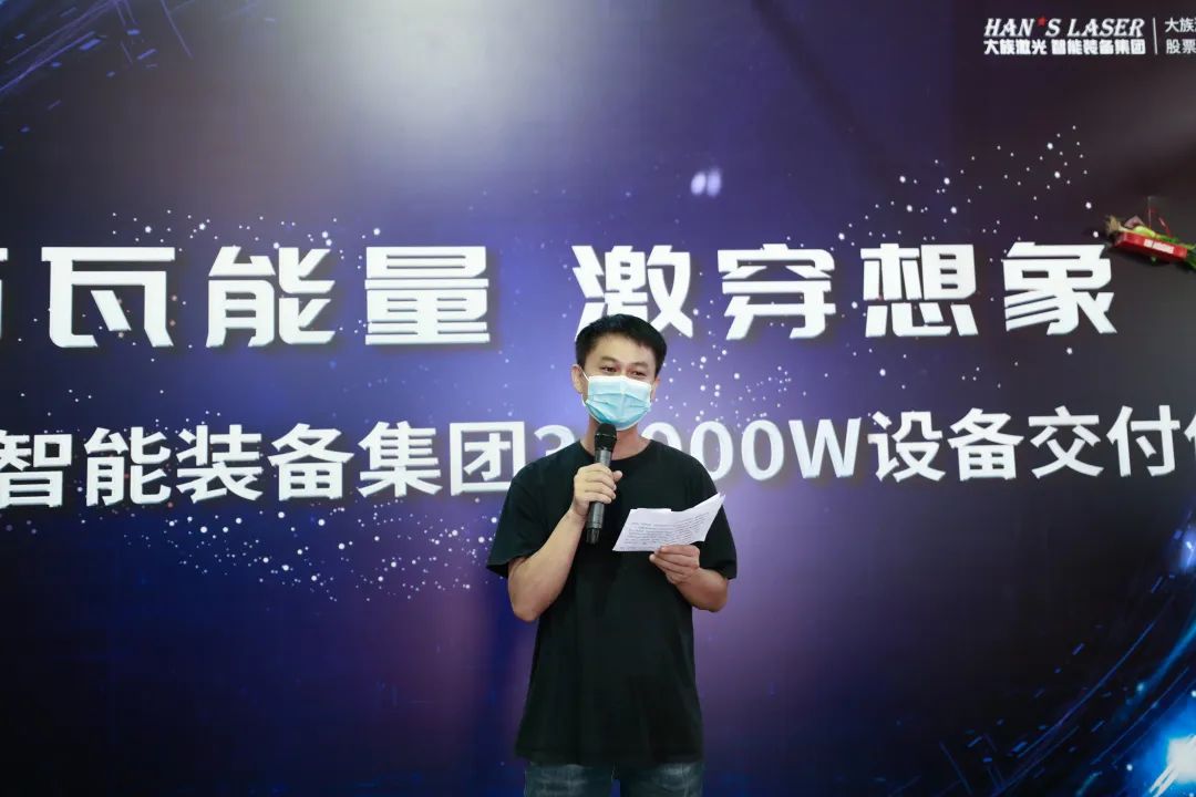 深圳市洪昊金屬科技有限公司總經(jīng)理黃國洪,大族激光智能裝備集團(tuán)粵東區(qū)域總監(jiān)何國培,大族激光智能裝備集團(tuán)粵東區(qū)域銷售經(jīng)理郭盛龍等相關(guān)領(lǐng)導(dǎo)、嘉賓共同見證這一激動人心的時刻。