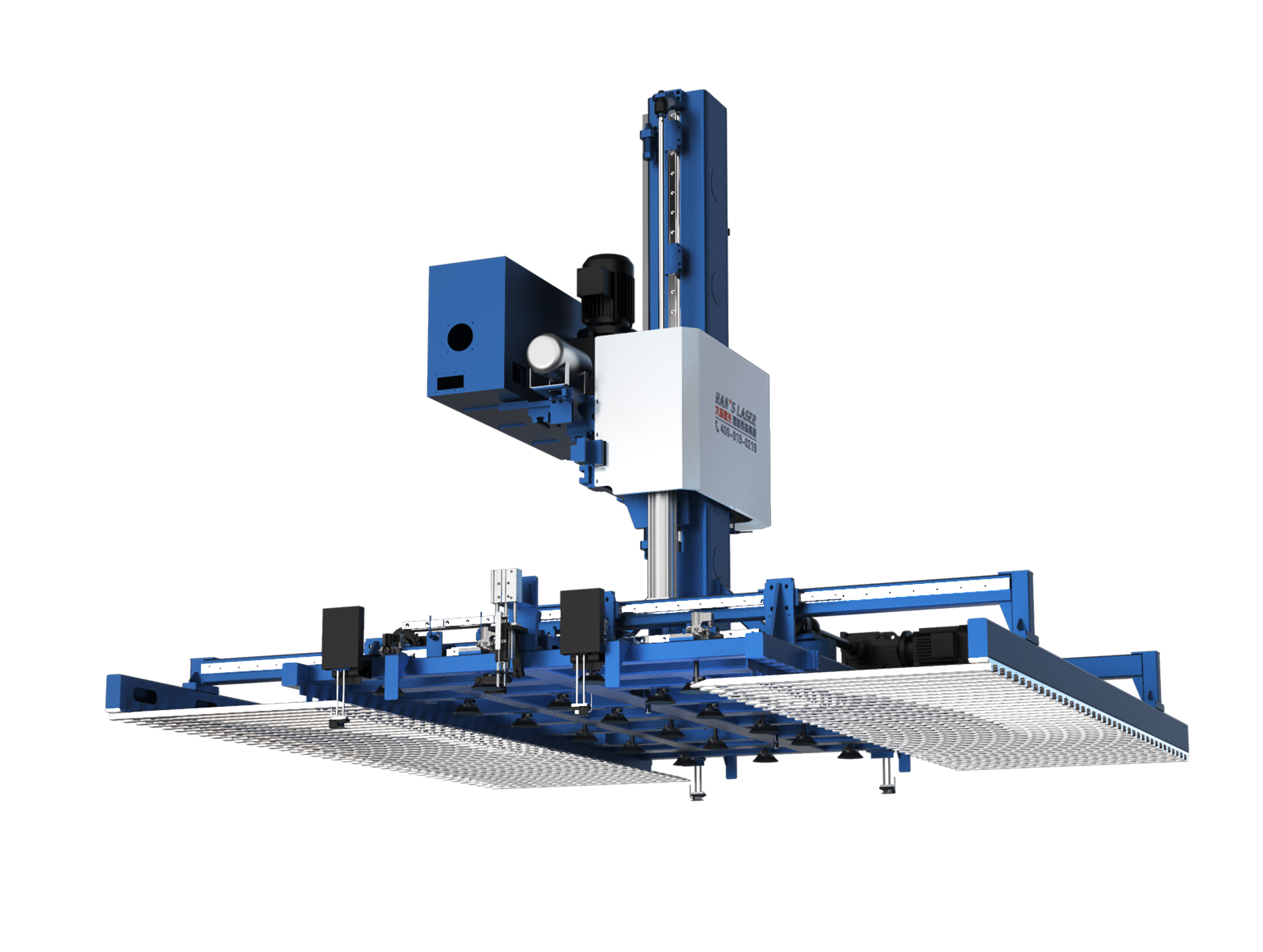 采用真空吸盤吸取原材料板材,安全性高、吸盤分區靈活。